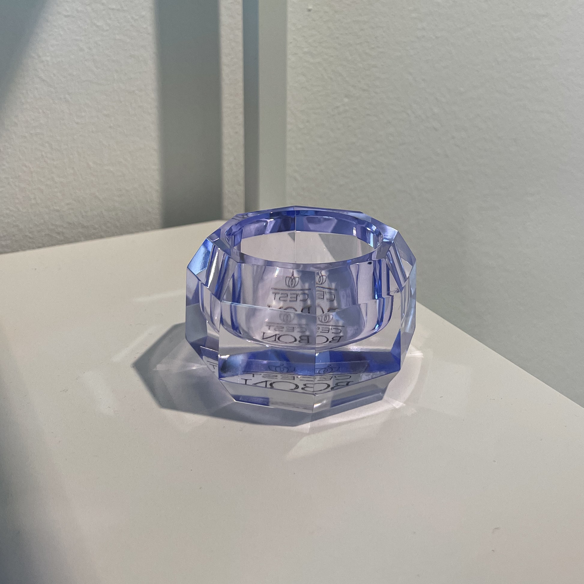 Die Kerzenhalter von der dänischen Marke C'est bon bestehen aus Kristallglas und stechen durch ihr wunderschönes Schimmern ins Auge.