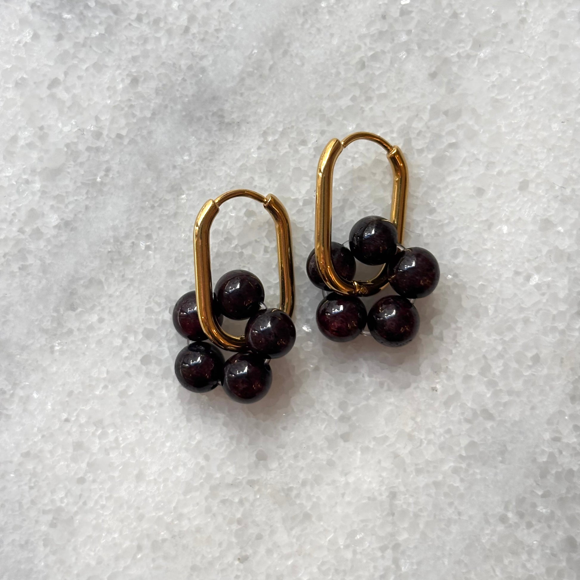 Entdecke unsere wasserfesten Edelstahlohrringe in strahlendem Gold, die mit einem zauberhaften Anhänger aus Halbedelsteinen in Bordeaux versehen sind. Diese einzigartigen Ohrringe vereinen Eleganz und Funktionalität, perfekt für jeden Anlass.