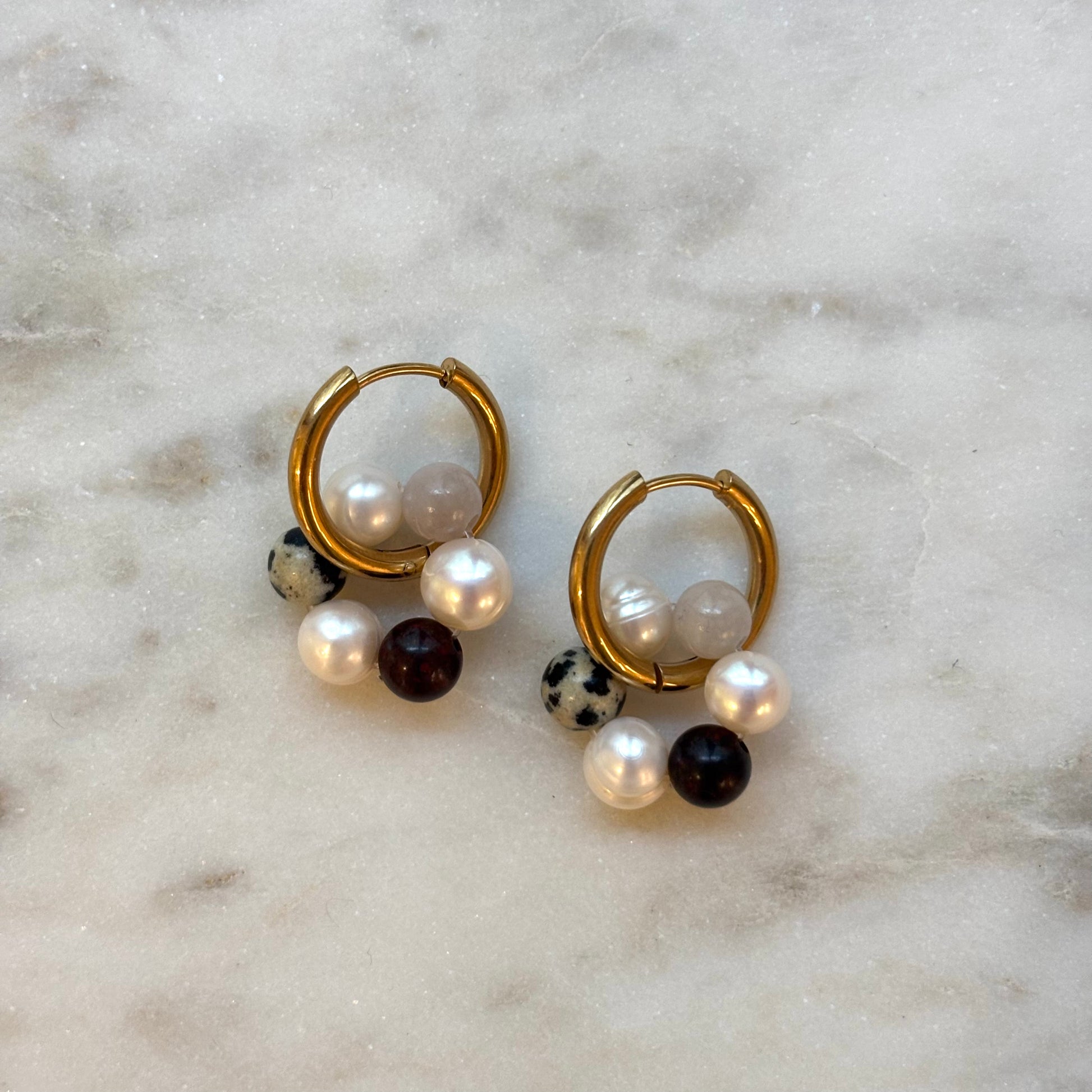 Entdecke unsere wasserfesten Edelstahlohrringe in strahlendem Gold, die mit einem zauberhaften Anhänger in Form einer Blume aus Halbedelsteinen versehen sind. Diese einzigartigen Ohrringe vereinen Eleganz und Funktionalität, perfekt für jeden Anlass.