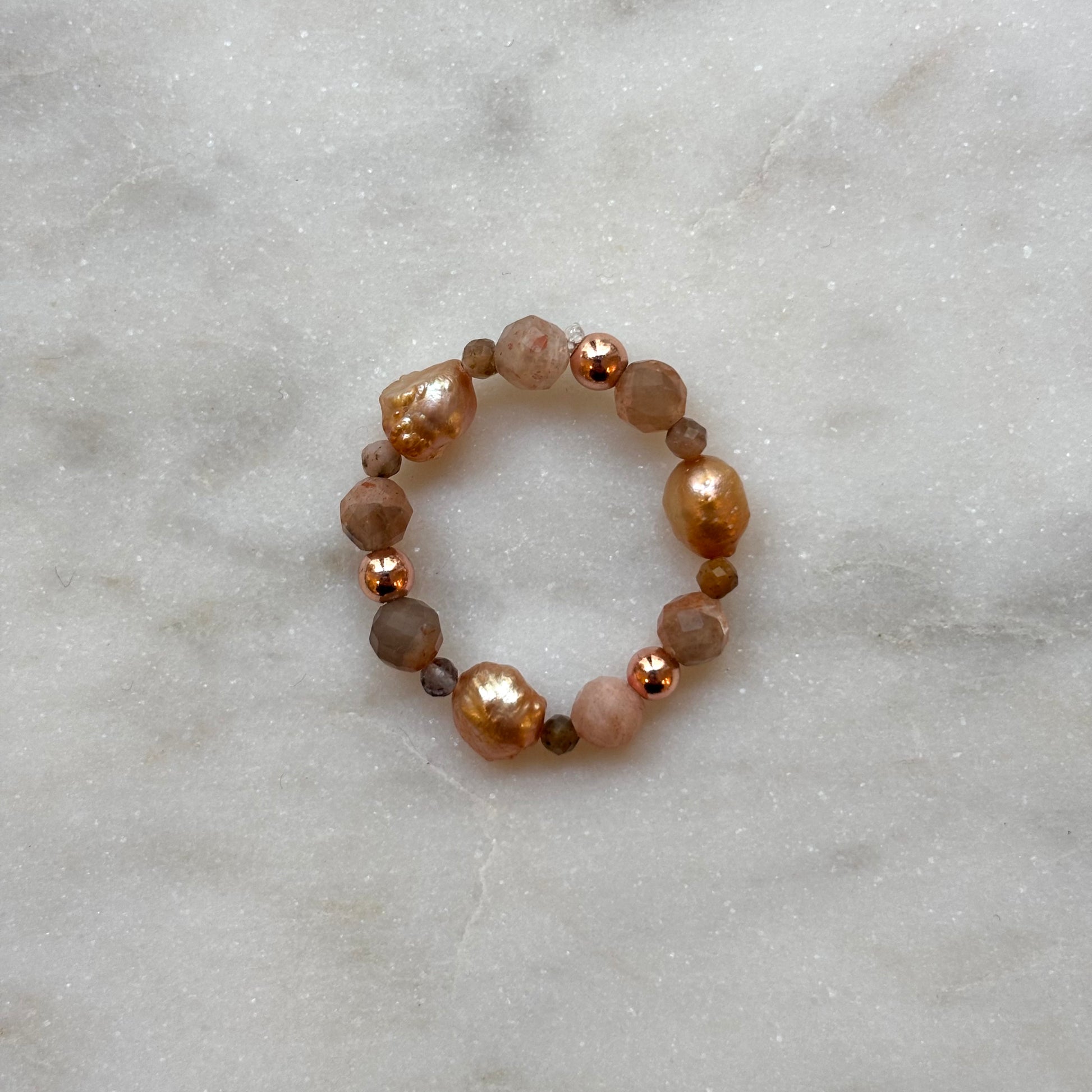 Die Ringe bestehen aus Süßwasserperlen und verschiedenen Halbedelsteinen und werden auf Bestellung hergestellt.